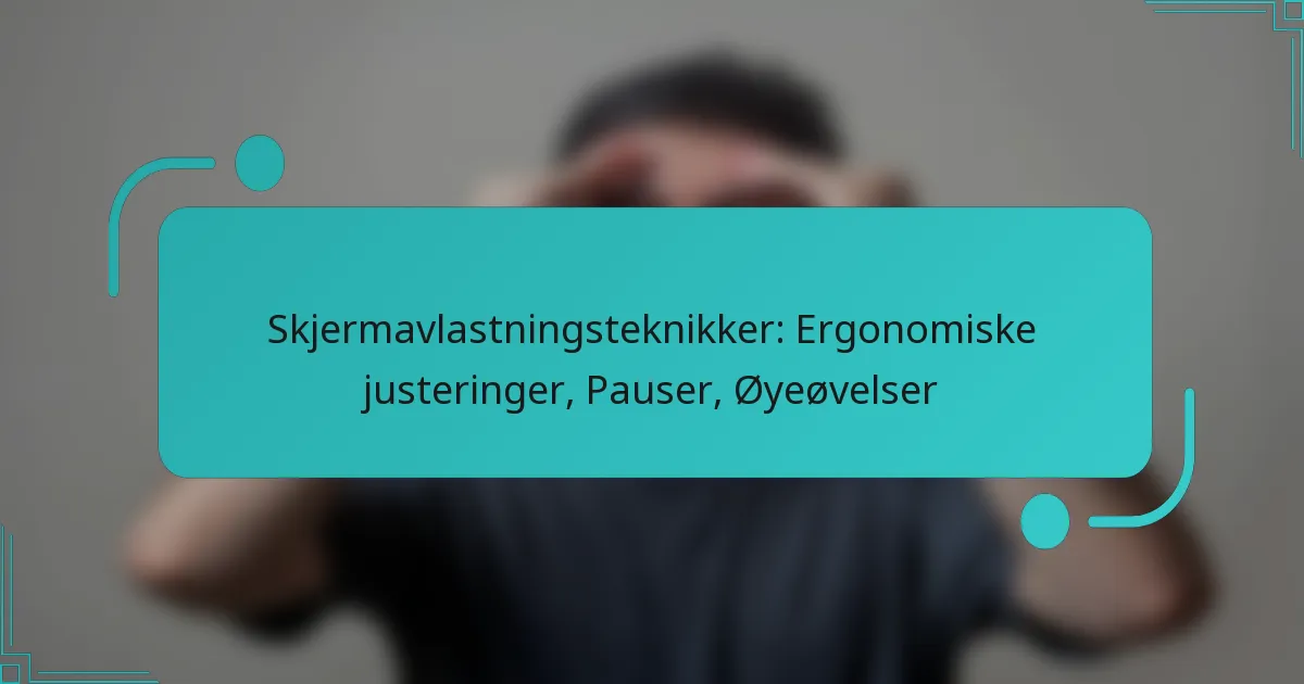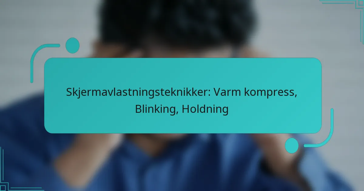 Effektive teknikker for å lindre skjermbelastning inkluderer varme omslag, blinkeøvelser og justering av holdning. Implementering av disse strategiene kan betydelig redusere ubehag og forbedre øyehelsen under langvarig skjermbruk.